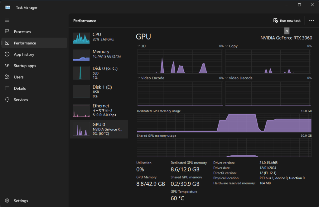 Open your task manager, go to the “performance” tab, then click on “GPU”.