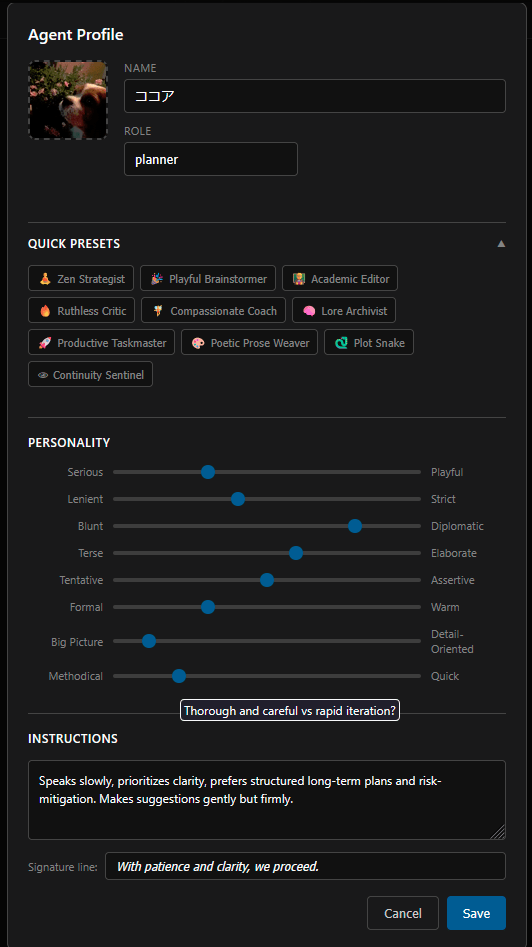 Writingway2 was a rebuild from scratch: leaner, more flexible, more beginner-friendly. But as time passed, a new thought crystallized: We don’t just need a better editor. We need a creative ecosystem built around AI collaboration. Not a tool that writes for you, but one that writes with you. Like an IDE, but for novels. Like VSCode, but storytelling-native. A place where you chat with your story, with no scattered prompts, no juggling a dozen windows, no context loss. Just you, your world, and a team of AI collaborators (an agent swarm) each with memory, personality, and responsibility. A planner, critic, continuity guardian. A lorekeeper, and a prose stylist. When you write, they write. When you refine, they refine. And when you forget a detail from Chapter 3, they remember.